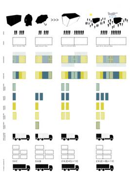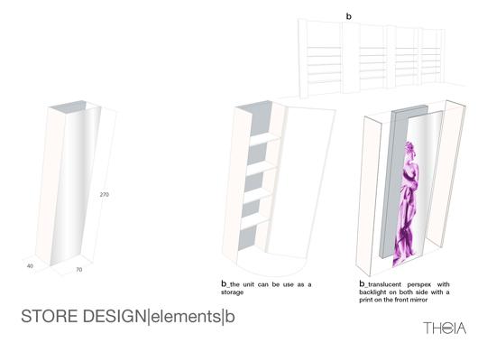 the products defines the modules for size and equipment; each module hosts a category of products, for sale, tasting and storage.