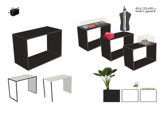 the modules can be composed according to the size of the store, the types of products sold, if indoor or outdoor